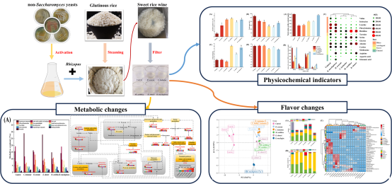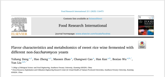近期,西伟德国际victor1946森林资源功能化学与健康食品创新团队以甜米酒为原料,研究非酿酒酵母对产品风味的改善领域取得新研究进展。相关成果以“Flavor characteristics and metabolomics of sweet rice wine fermented with different non-Saccharomyces yeasts”为题发表在农林科学类中科院一区TOP期刊《Food Research International》(IF=8.0)上。伟德国际victor1946食品加工与安全专业2022级硕士研究生邓玉航为论文第一作者,刘云教授为通讯作者。