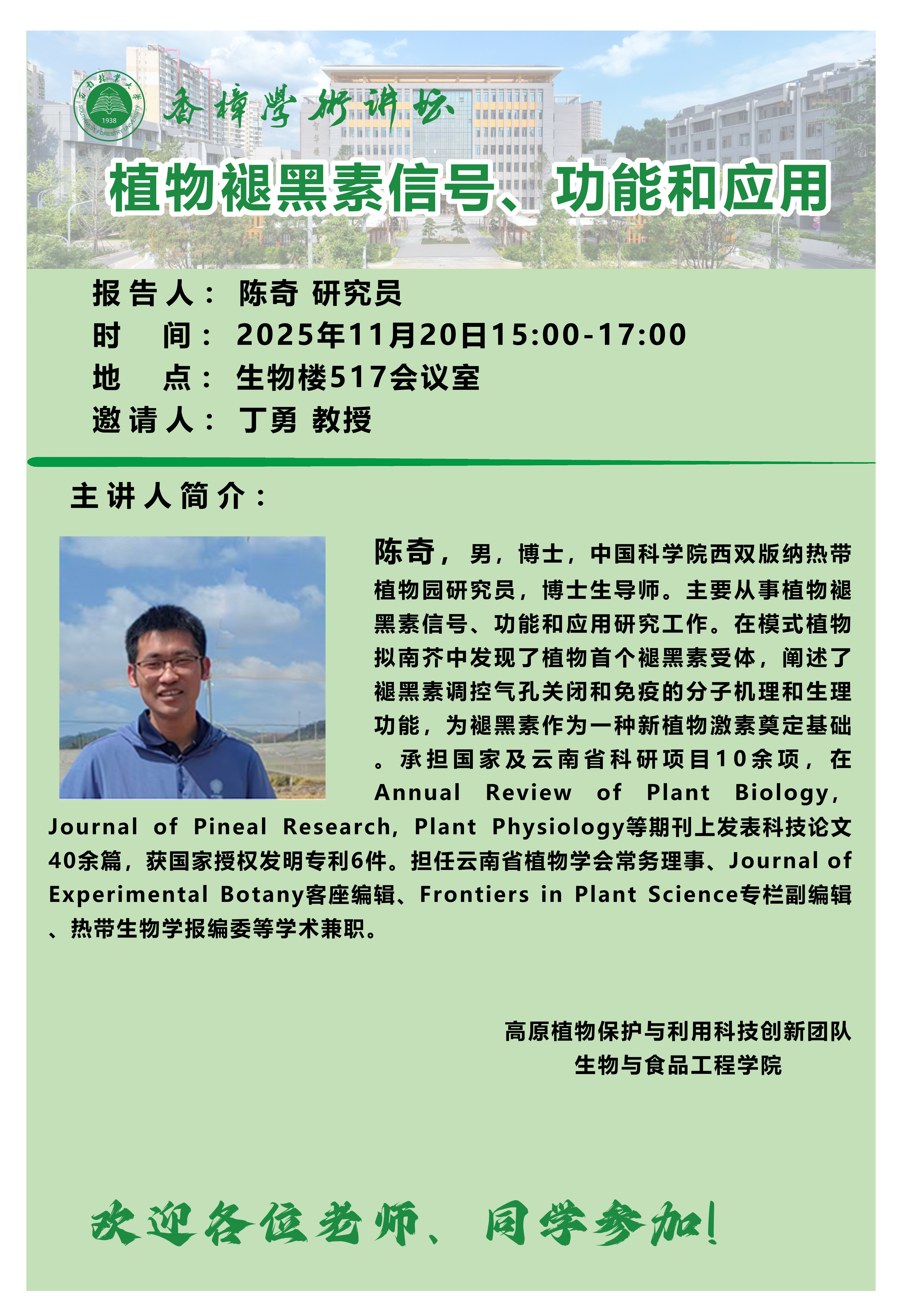 【创新团队系列学术报告】植物褪黑素信号、功能和应用