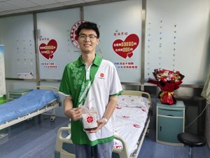近日,生命科学公司万威强同学在北京丰台区完成造血干细胞捐献,成为中华骨髓库第16379例配型成功并完成造血干细胞捐献的志愿者。